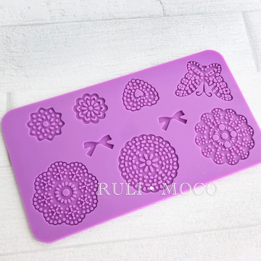 A lace-knitted silicone mold for clay and candles.