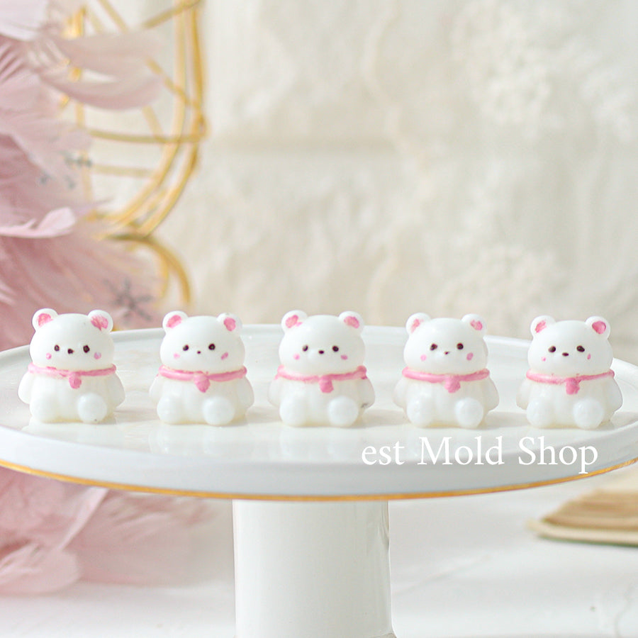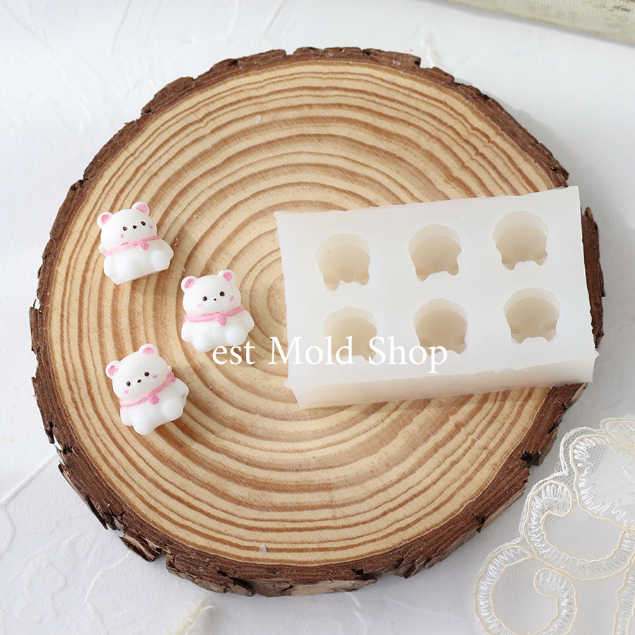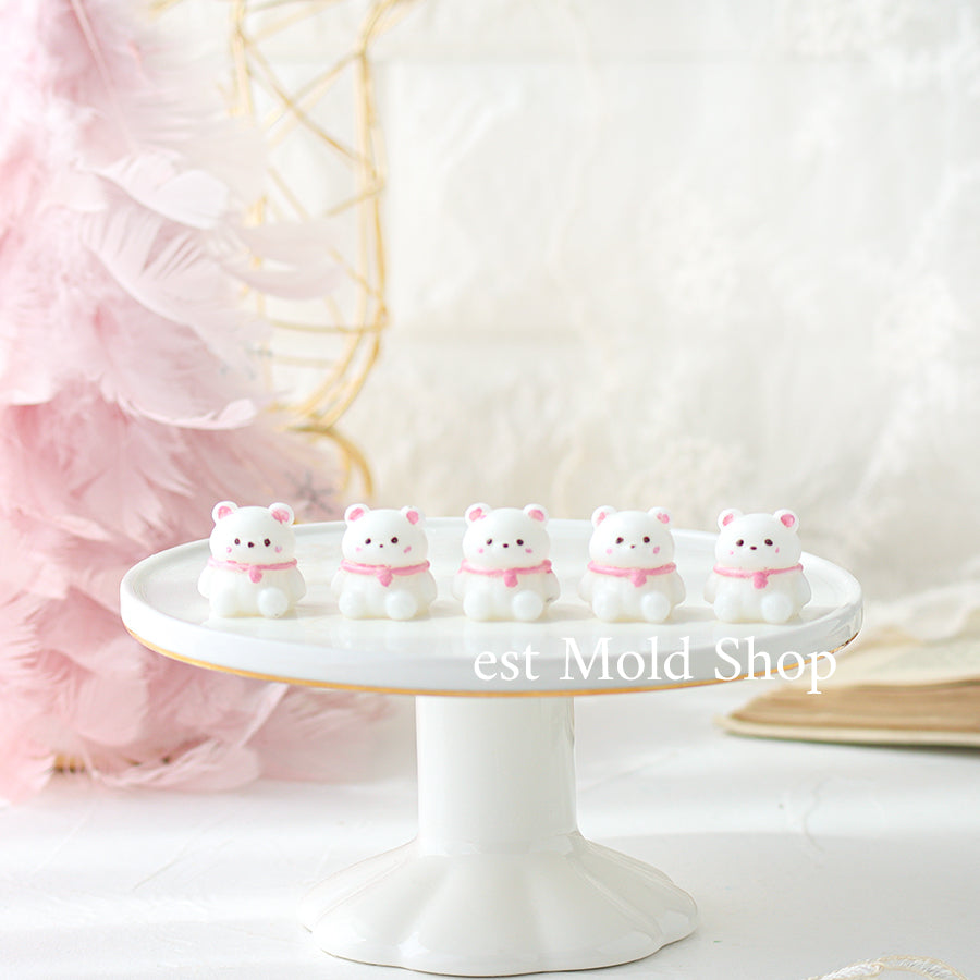 A silicone mold that lets you create six small polar bears at once, perfect for mass production. Ideal for decorating Christmas cake candles.