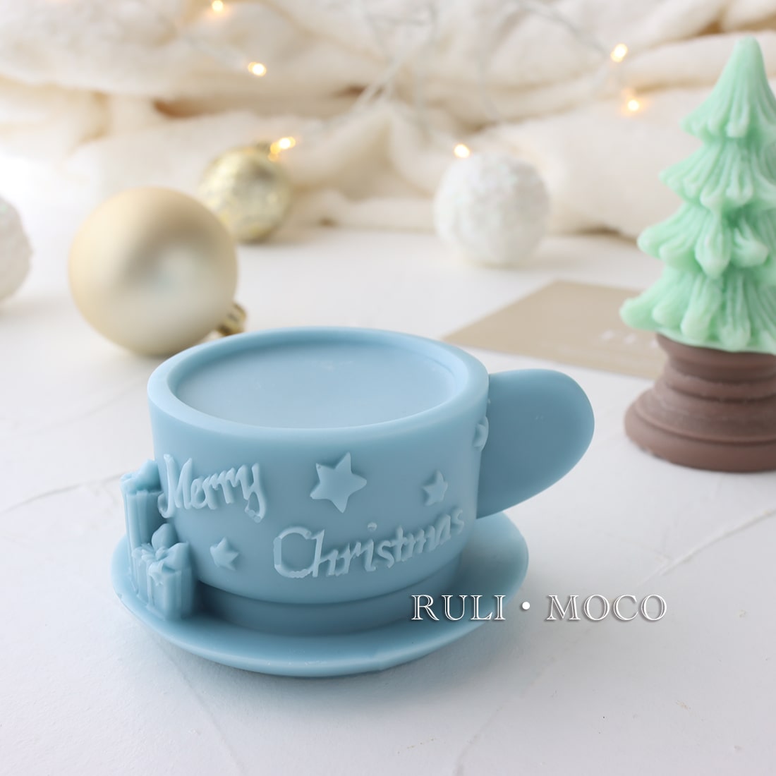 A cup-shaped silicone mold with a "Merry Christmas" message.