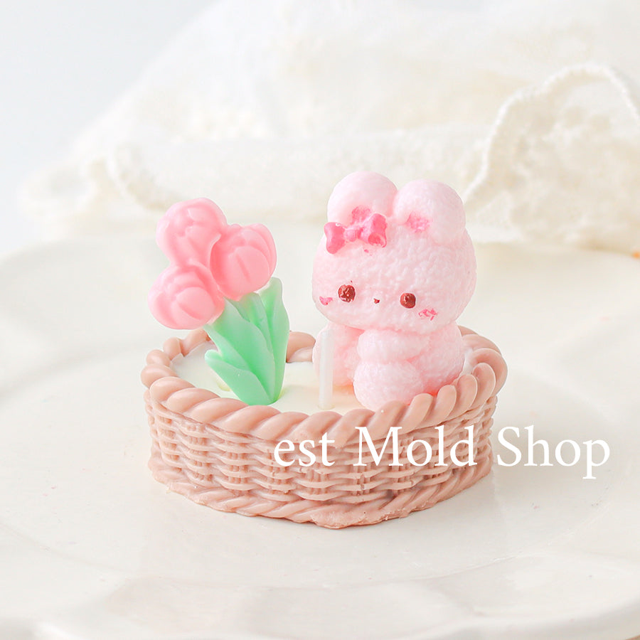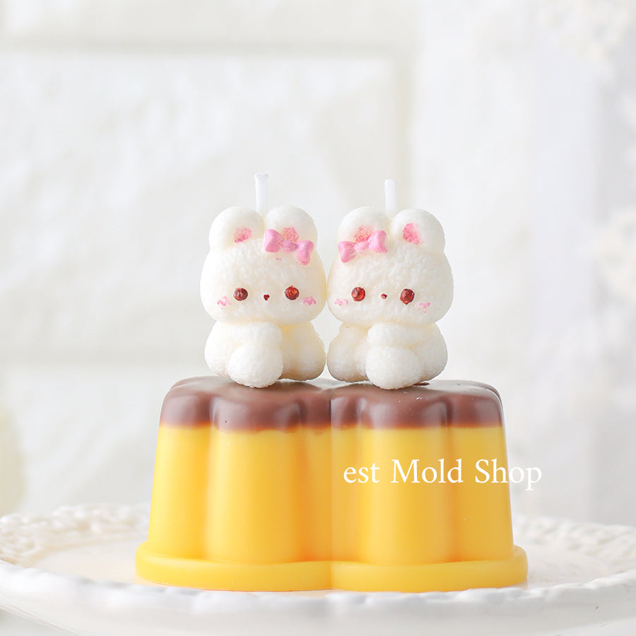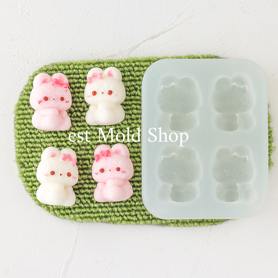 A silicone mold featuring an adorable bunny dressed up with a small ribbon for a charming touch.