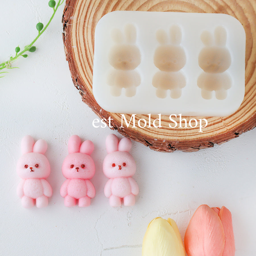 A silicone mold featuring an adorable bunny with a softly rounded, chubby shape.
