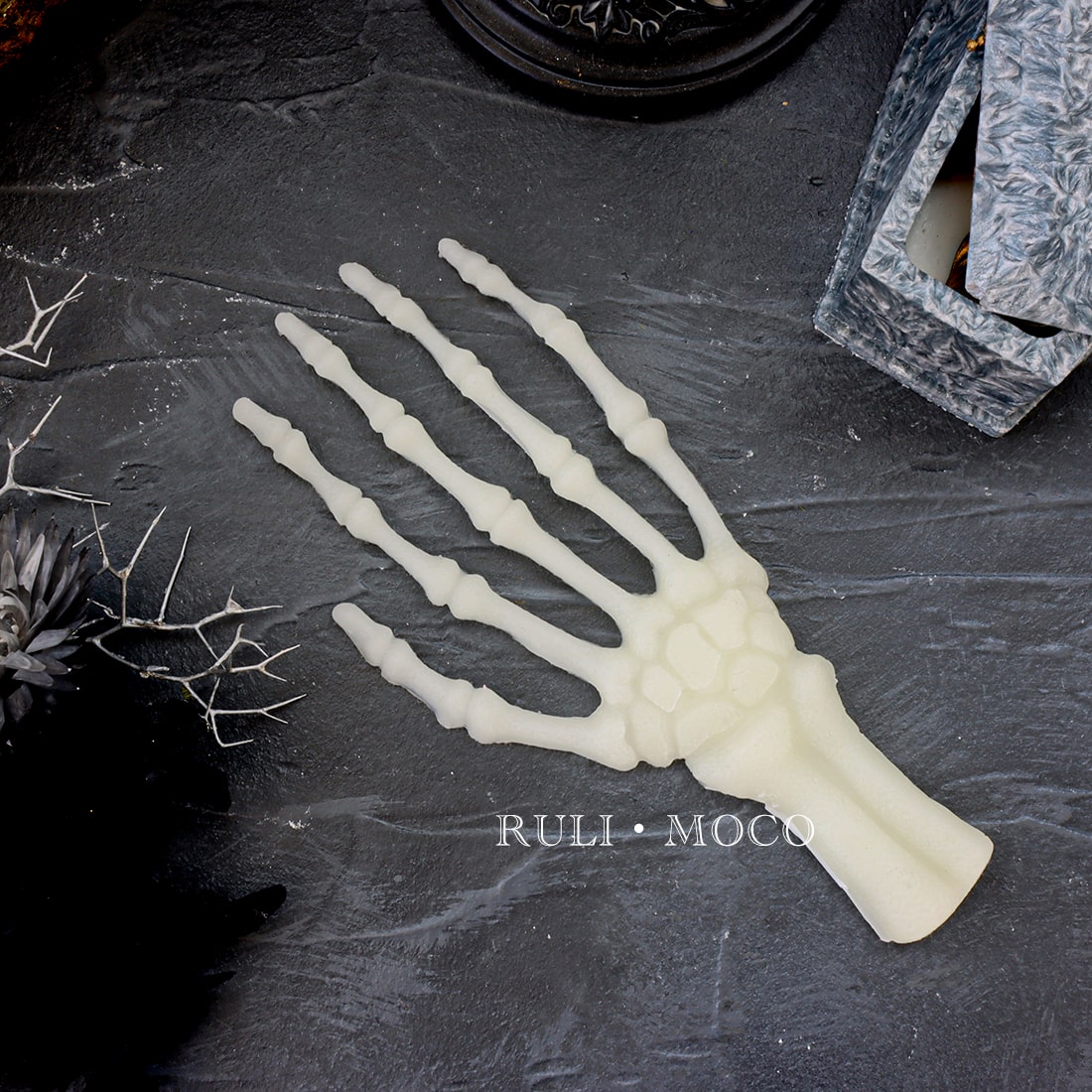 This silicone mold creates an incredibly realistic skeleton hand.