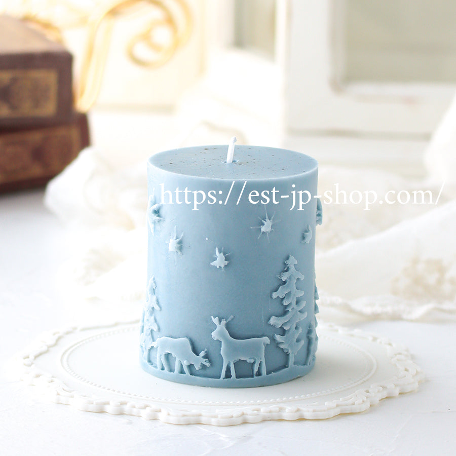 A silicone mold depicting a beautiful winter scene under a starry sky, featuring reindeer, Christmas trees, and more. Create charming candles that capture the magic of a festive Christmas night.