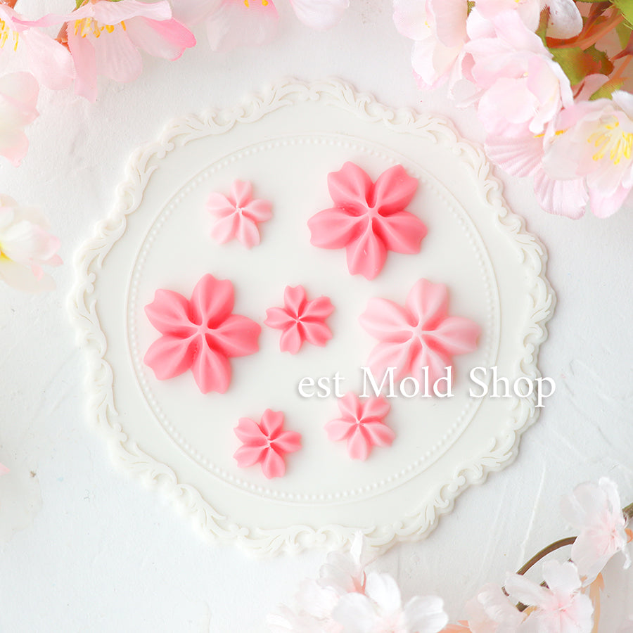 口金で絞った桜モチーフのクリームを再現できるシリコンモールドです。