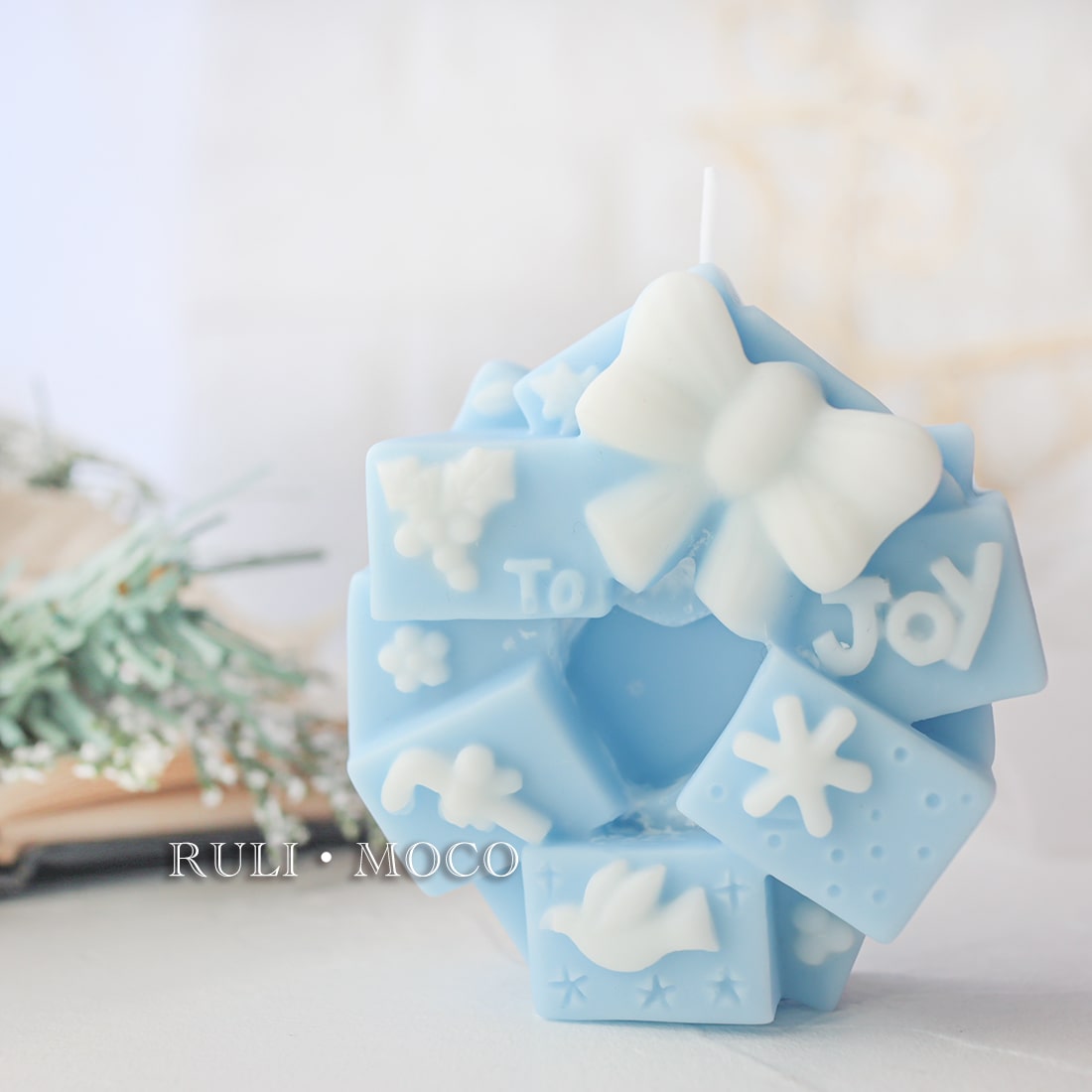 沢山のギフトボックスをリース状に集めた可愛い作品が簡単に出来上がるので初心者の方にもおすすめ。 ※中央に穴は空きません