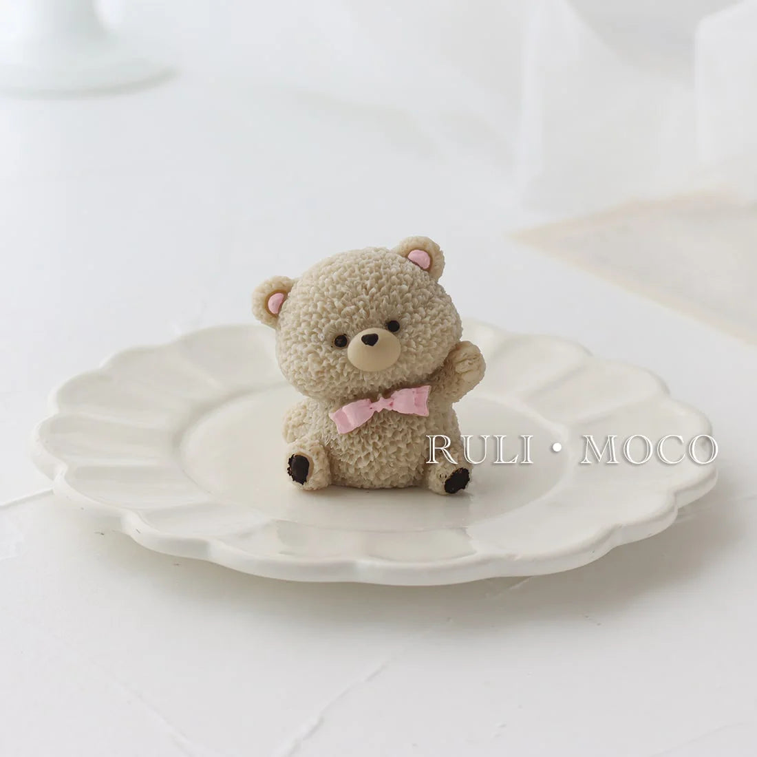 キュートなクマさんシリコンモールド。 ふわふわの毛並みが再現されています。 お鼻がハート型になっていて、ぷくぷくと可愛らしいフォルム。 柔らかめのモールドで作りましたので、ソイワックス100%でも取り出しが可能です。