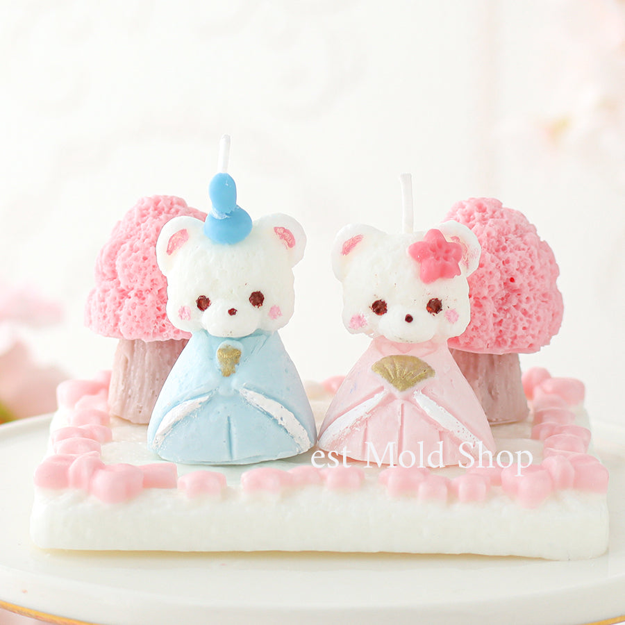 可愛らしいクマのお雛様を作ることができるシリコンモールド