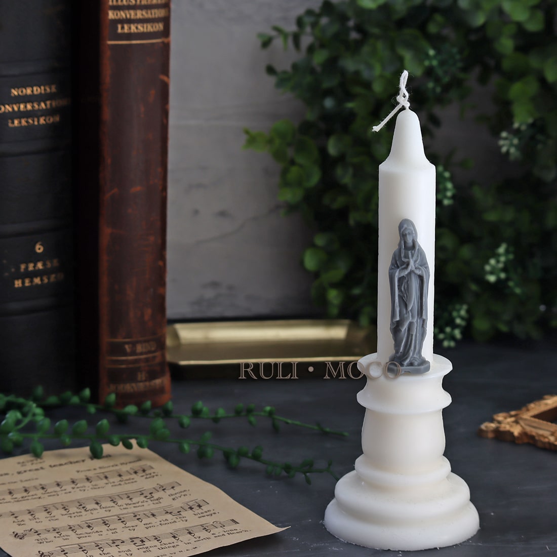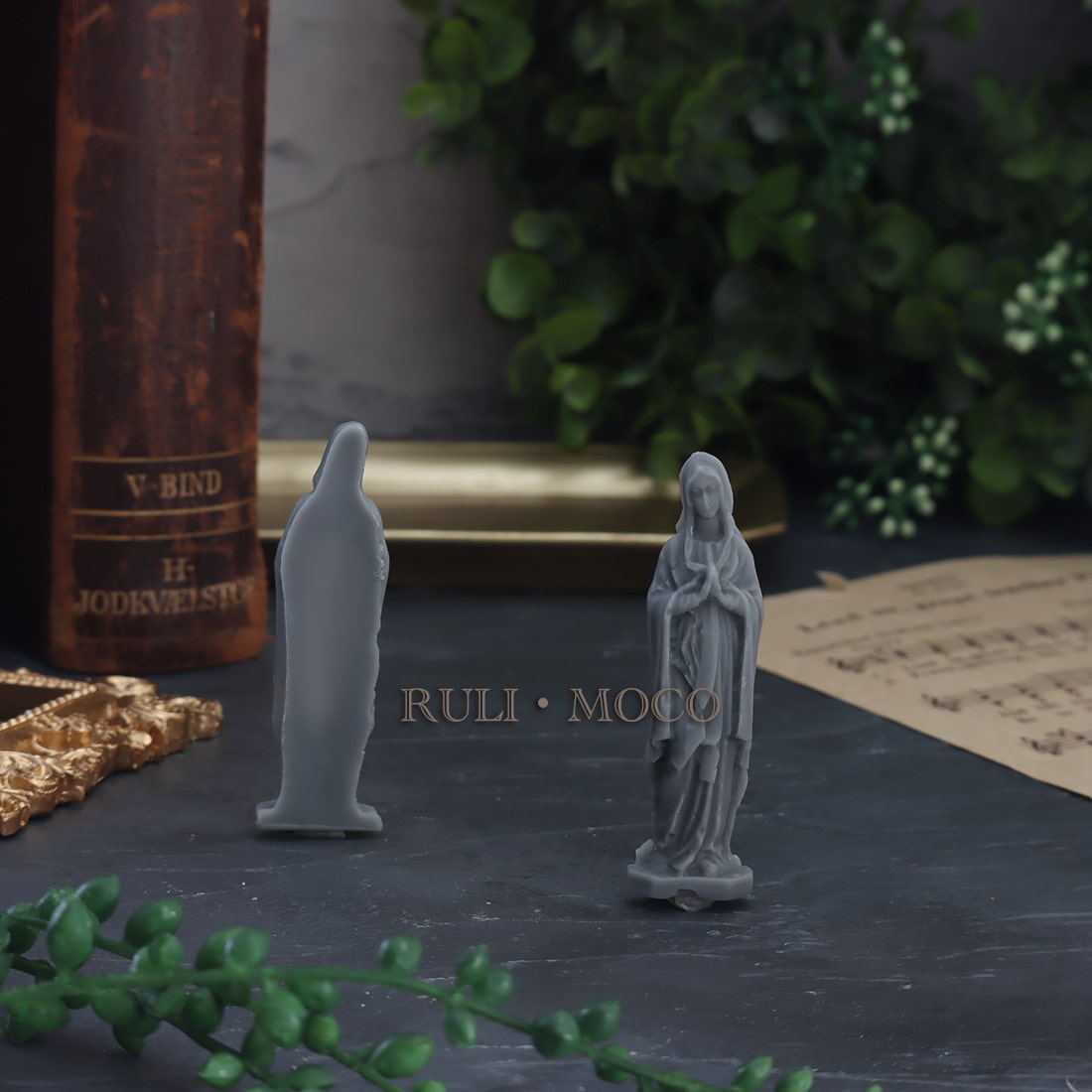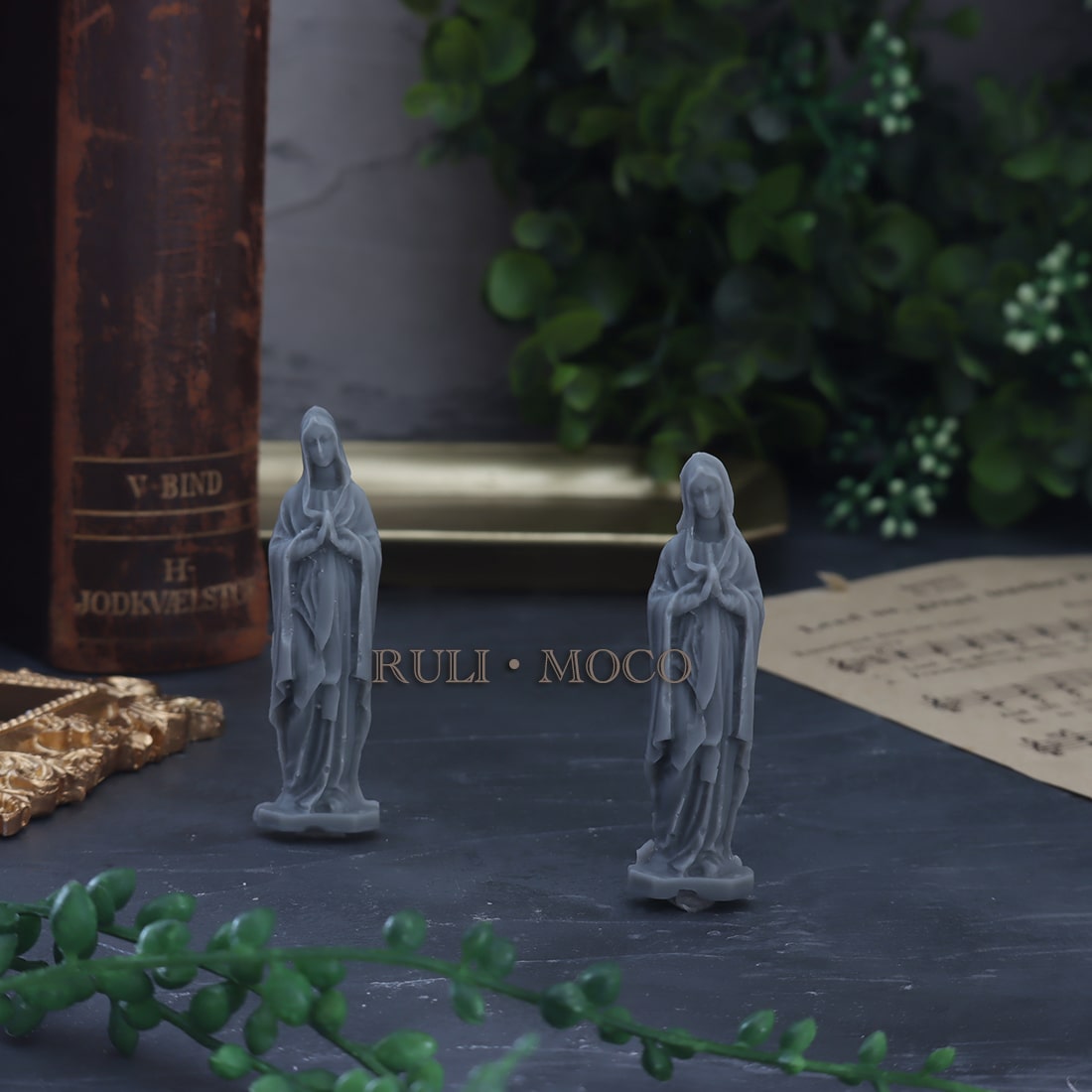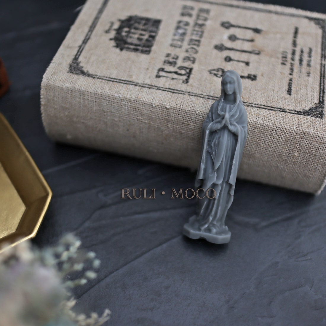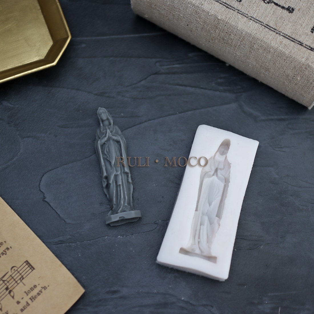 小さなマリア像のシリコンモールド。 アロマストーンやキャンドルの装飾としてお使いいただくのにお勧めです。 片側のみの彫刻となっており、作品に飾り付けたりアロマストーンなどに使いやすいアイテム。