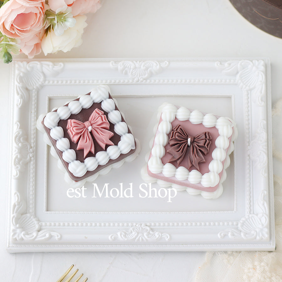 四角いスポンジにクリームが絞られた形のケーキ形シリコンモールド